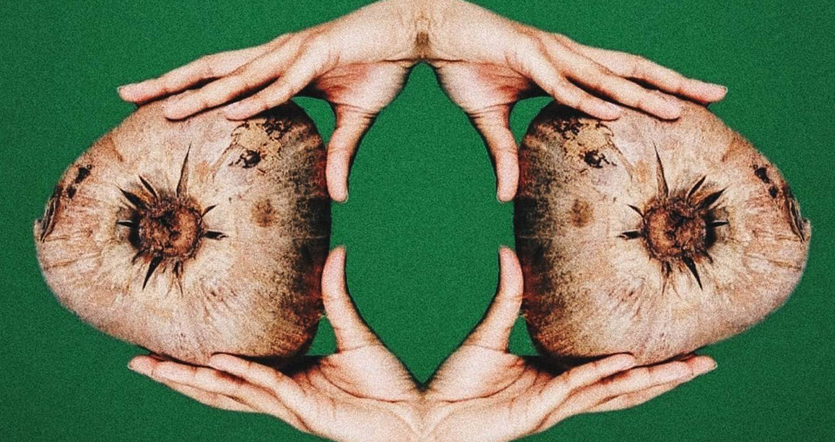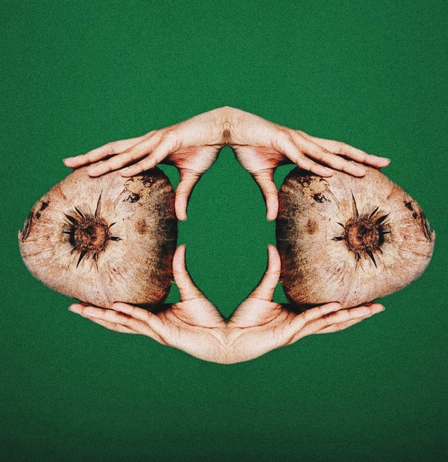 Self-soothing the scar where the coconut was cut from the palm. Organic brush in hand. An artist’s provocation and remedy. This is Manchester now.