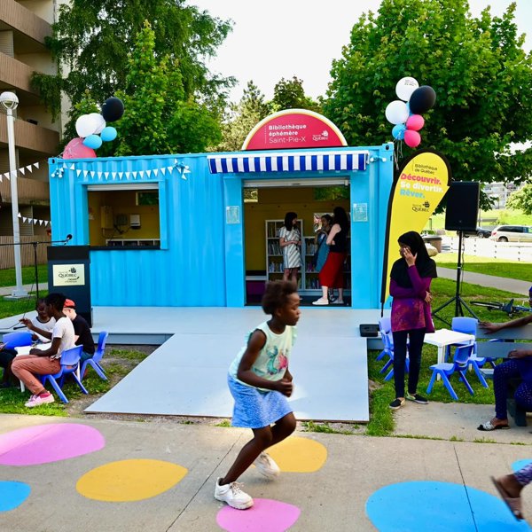 Située dans un quartier multiculturel, la bibliothèque éphémère Saint-Pie-X est installée dans un conteneur maritime entièrement aménagé. Elle propose des activités et des livres destinés aux enfants âgés de 0 à 12 ans avec pour objectif de développer leur goût pour la lecture et contribuer à leur réussite scolaire.