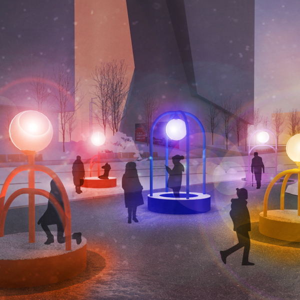 Crée grâce à l'initiative des villes créatives UNESCO Québec (littérature), Montréal (design). Toronto (arts numériques) et London (musique), l'installation participative Celestia du studio Kleis allie quatre domaines créatifs et entremêle couleur, poésie et musique.